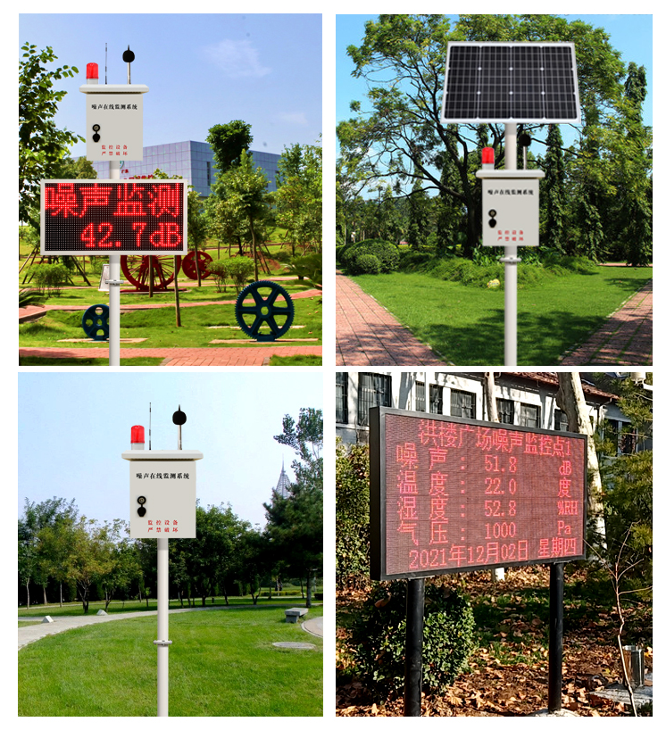 學校,醫院,機關單位,生活區噪聲監測,用于室內室外環境噪聲監測及顯示的裝置,采用全點陣LED發光模組面全點陣顯示 功能,適用于工廠、車間、公園、住宅小區等其它公共場所室內外環境噪聲的顯示。顯示內容為噪聲瞬時值A、平均Leq值及時間和流動文字等,可任意設定噪聲值,并超過設定值報警(或顏色變換)提示。